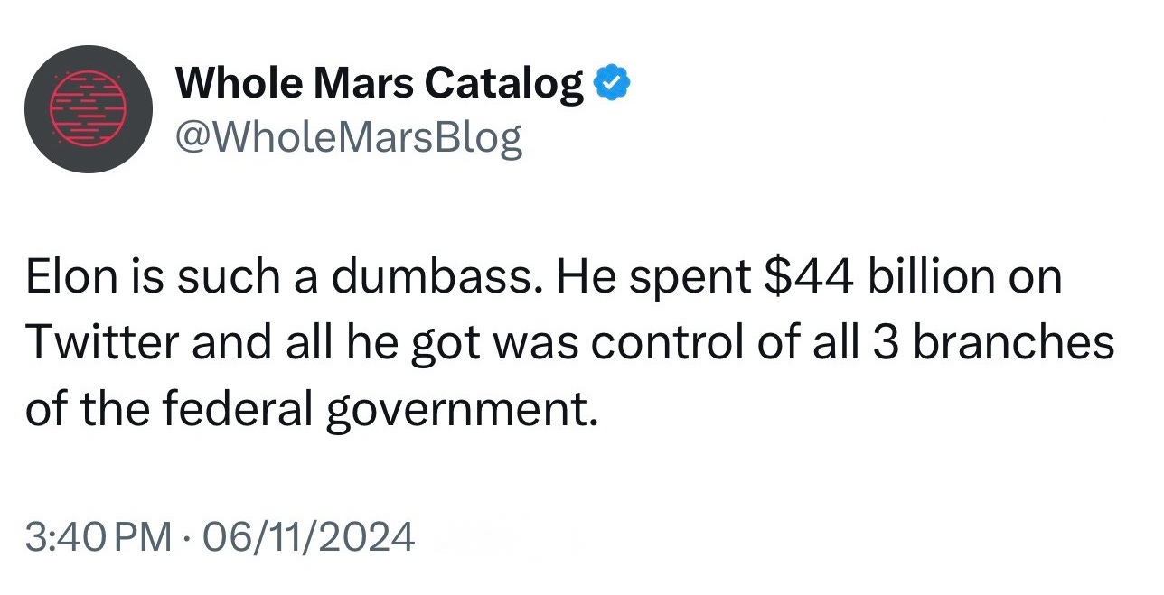 «ایلان [ماسک] خیلی احمقه. ۴۴ میلیارد دلار خرج [خریدن] توییتر کرد و تنها چیزی که به دست آورد کنترل هر ۳ شاخه دولت فدرال [آمریکا] بود.» و البته استوری اینستاگرام خودم رو: