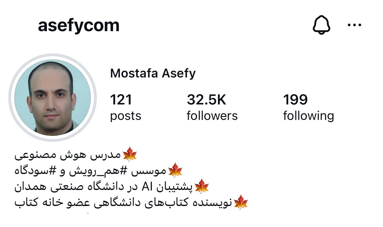 دنبال کردنشون پیشنهاد میشه: مصطفی آصفی یا asefycom در اینستاگرام.